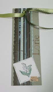 flower...Lily of the Valley. On the bottom it has the flower and says thinking of you, my name is on the right side (I love it when I get things with my name on them! Weird, right?) and on the back it says "Friendship isn't a big thing - it's a million little things." That is just so sweet and makes me feel so loved! I have a clue of who might have made it for me so I must check with her today but I had to show you guys right away!Tomorrow, I'm going to show you guys what I do with my Nestabilities after I receive them. I don't like the clam shell that they come in so I've copied someone on a blog (can't remember who at this point) and put them into a more friendly for Lorie container.